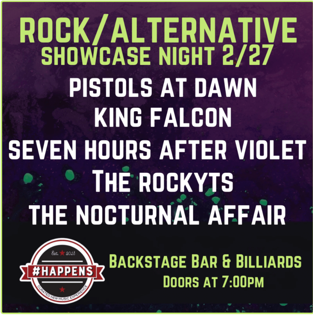PISTOLS AT DAWN will have a live showcase at the iconic Viper Room in Los Angeles on February 25, hosted by Josh Bernstein and Caity Babs. Get tickets HERE. Check the image below for additional details. The band is also scheduled to perform at the annual #Happens radio convention in Las Vegas from February 26 through 28, hitting the stage on February 27 at Backstage Bar + Billiards. All details HERE and in photo below.